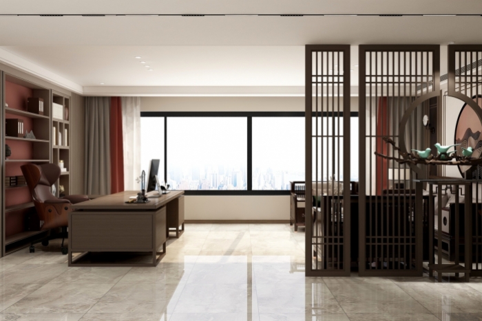 新中式工作室装修设计案例通常融合了传统中式元素与现代设计理念,旨在创造既具有文化底蕴又不失现代感的工作环境。 注重功能分区,合理规划办公区域、会议室、休息区等空间,以满足不同功能需求。保持空间的开阔与通透,增加自然光照,营造舒适的工作氛围。