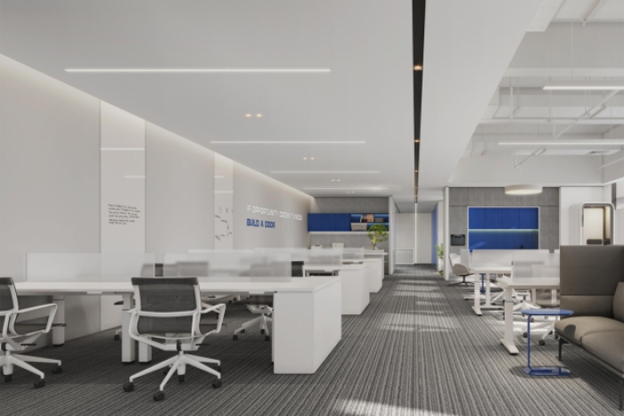 本办公室装修设计项目通过运用现代简约的设计风格,结合科技元素和人性化设计,打造出了一个既符合现代审美又充满科技感、舒适度和实用性的办公环境。整个空间布局合理、功能齐全、美观大方,为员工提供了一个高效、舒适、愉悦的工作环境。同时,本案例也充分展示了设计师的专业素养和创新精神。 开放式办公区是员工的主要工作区域,设计...